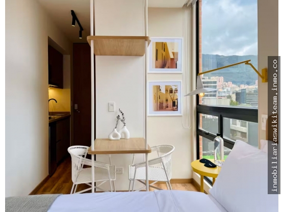 Apartaestudio moderno, amoblado y muy iluminado, ubicado a pocos pasos del Parque de la 93, en uno de los sectores más exclusivos de Bogotá.